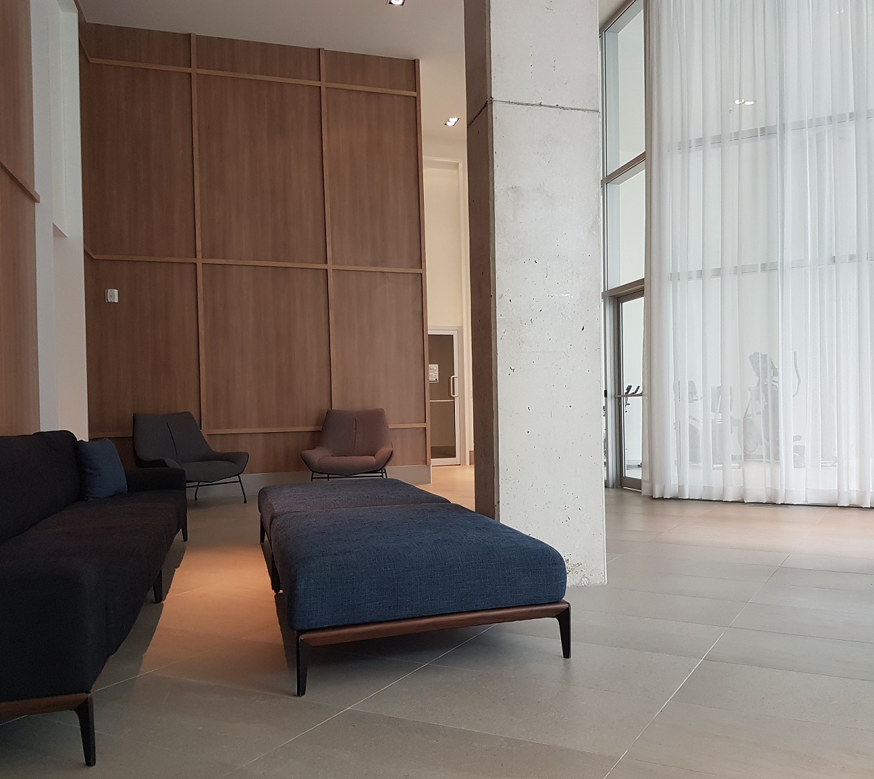 Le Conrad inclus 135 appartements à louer à Lasalle avec un grand hall d’entrée luxueux pour vous accueillir et vous offrir un moment de détente avant ou après une grande soirée à Montréal ou une longue balade dans le grand Parc Angrignon.